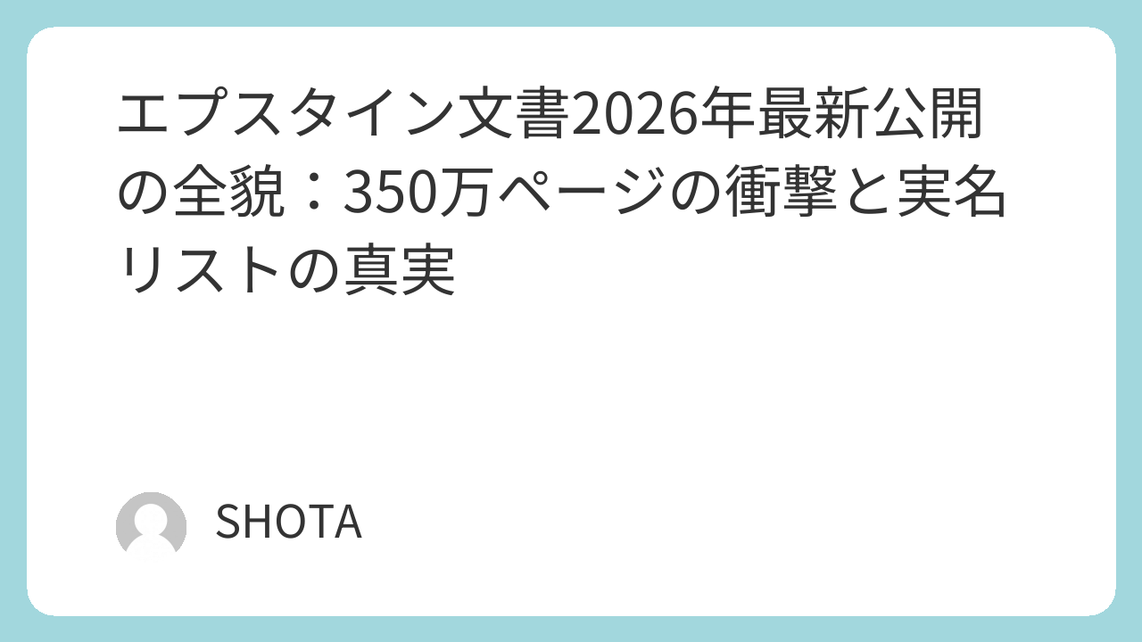 本記事では、2026年2月時点の最新動向を中心に、エプスタイン文書の全体像とこれまでの経緯、そして世界に与えている影響を、公的な事実に基づき詳細に解説します。