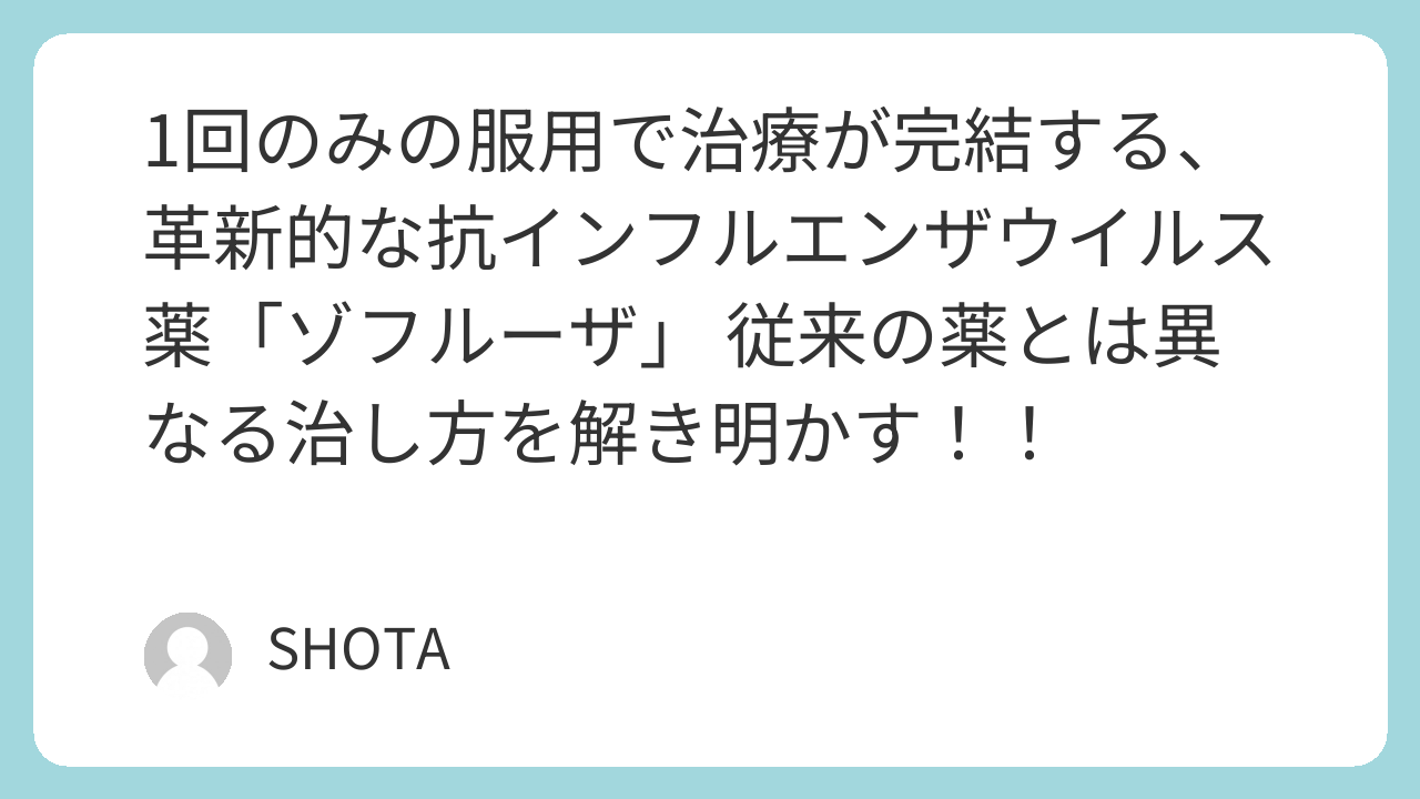 ゾフルーザは、1回の服用でインフルエンザウイルスの増殖を強力に抑えることができる、画期的な治療薬です。患者にとって「飲み忘れがない」「治療が一度で終わる」という利便性は非常に高いものがあります。