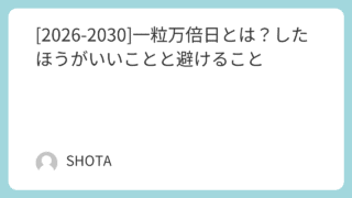 トレンド [2026-2030]一粒万倍日とは?したほうがいいことと避けること 日本の吉日「一粒万倍日」の正しい意味、由来、やっていいこと・避けるべきことを詳しく解説。2026年から2030年までの天赦日と重なる「最強開運日」カレンダーも掲載しています。財布の新調や入籍、起業などの参考にしてください。 2026.02.11 トレンド