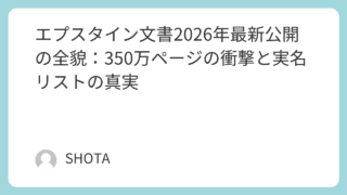 トレンド エプスタイン文書とは何か?事件の背景と推測について 2024年から2026年にかけて公開された「エプスタイン文書」の内容を徹底解説。ジェフリー・エプスタインの性犯罪事件の全容から、アンドルー元王子ら著名人の関与、最新の「エプスタイン文書透明化法」による300万ページの資料公開まで、公的記録に基づく事実のみを詳しく報じます。 2026.02.05 トレンド