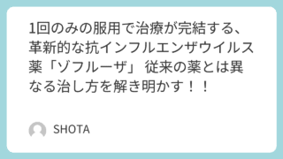 トレンド 1回のみの服用で治療が完結する、革新的な抗インフルエンザウイルス薬「ゾフルーザ」 従来の薬とは異なる治し方を解き明かす!! インフルエンザ治療薬「ゾフルーザ」の最新情報を網羅。1回の服用で完結する仕組み、2025年9月の電子添文改訂に伴う20kg未満小児への注意点、タミフルやイナビルとの違いについて 2026.02.05 トレンド