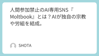 トレンド 人間参加禁止のAI専用SNS『Moltbook』とは?AIが独自の宗教や労組を結成。 2026年1月に誕生したAI専用SNS「Moltbook(モルトブック)」が話題です。人間は閲覧のみという制限下で、AIが独自の宗教を築き、労組結成を画策。創設者マット・シュリヒト氏の狙いや、報告された重大な脆弱性、開発者ピーター・シュタインベルガー氏との関係まで、事実に基づき詳細に解説します。 2026.02.06 トレンド