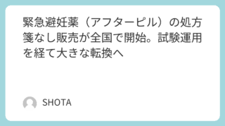 トレンド 緊急避妊薬(アフターピル)の処方箋なし販売が全国で開始。試験運用を経て大きな転換へ 2026年2月2日より、日本国内で緊急避妊薬(アフターピル)の処方箋なし販売が正式に開始されました。購入できる薬局の条件、年齢制限、価格、薬剤師による対面販売のルールなど、最新の情報をまとめています 2026.02.06 トレンド